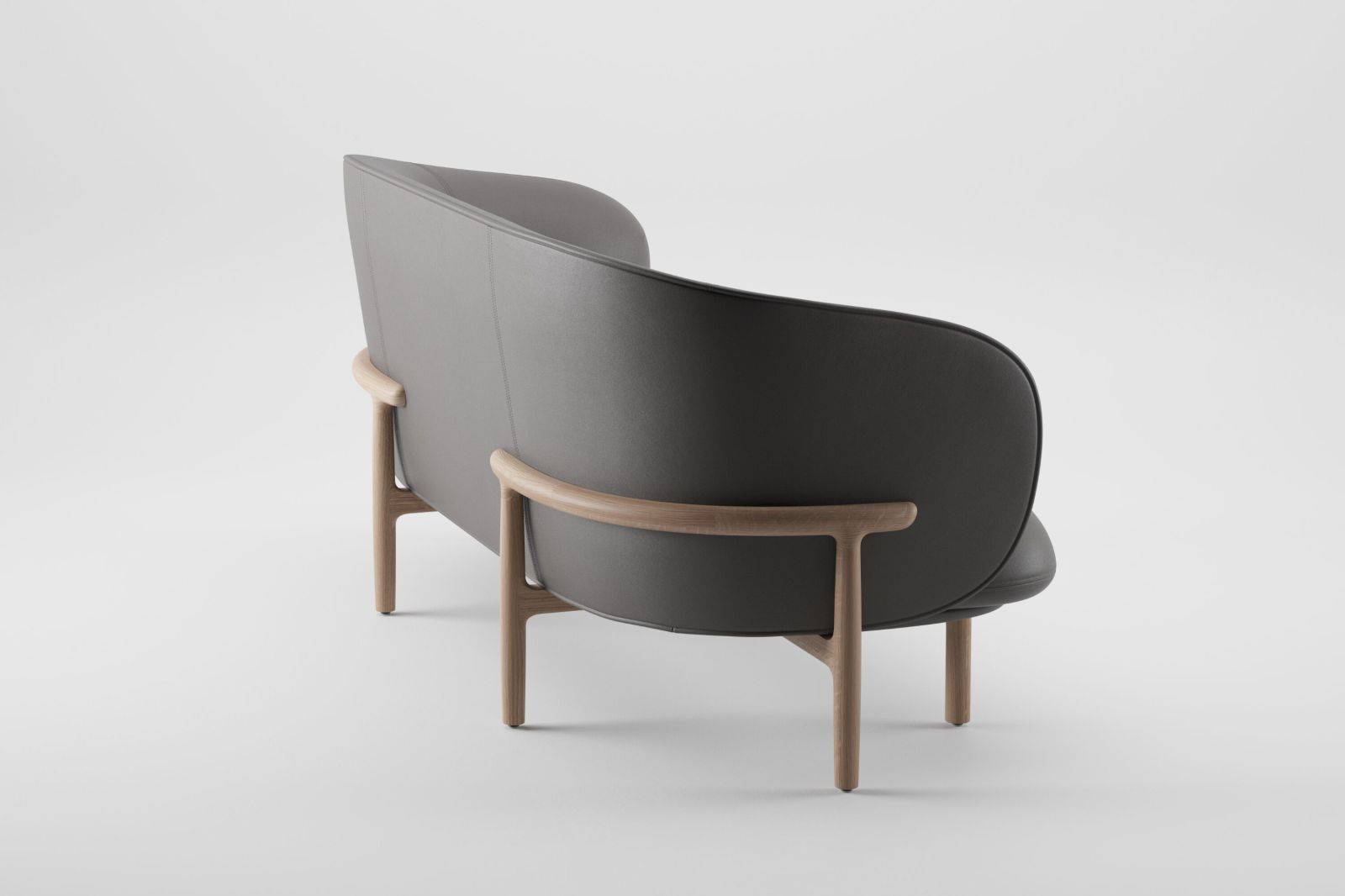 Designed by Norm Architects, the Enclose chair (shown in black leather with a walnut frame) is a modern interpretation of the classic wingback chair.